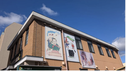 池田市の旧商店街には、落語ミュージアムがあり、大きな絵が壁いっぱいに 落語の世界が描かれています。